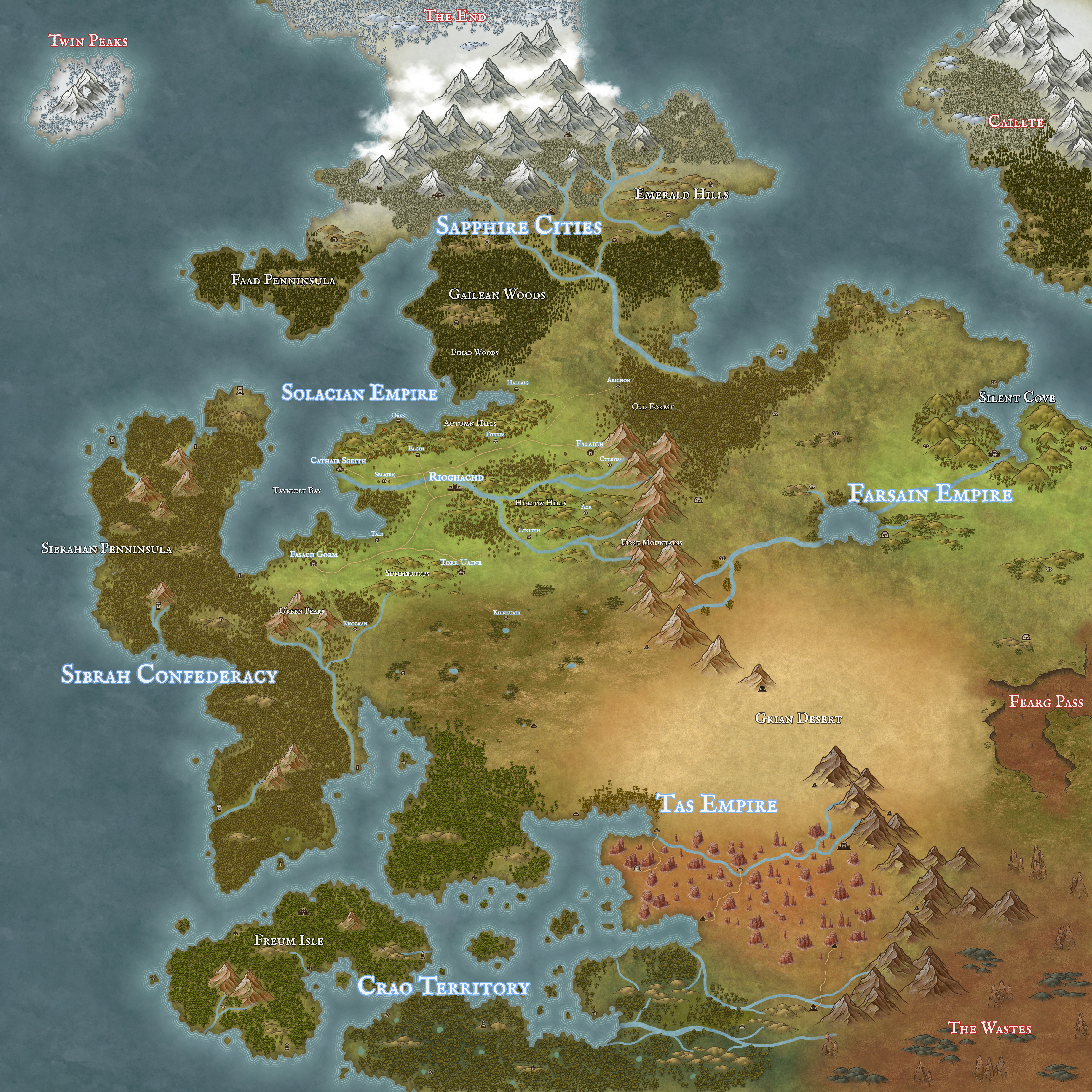 Highly religious, and believing themselves to be the original race, most Solas occupy the fertile valleys west of the First Mountains. They are known for their superior physical strength.